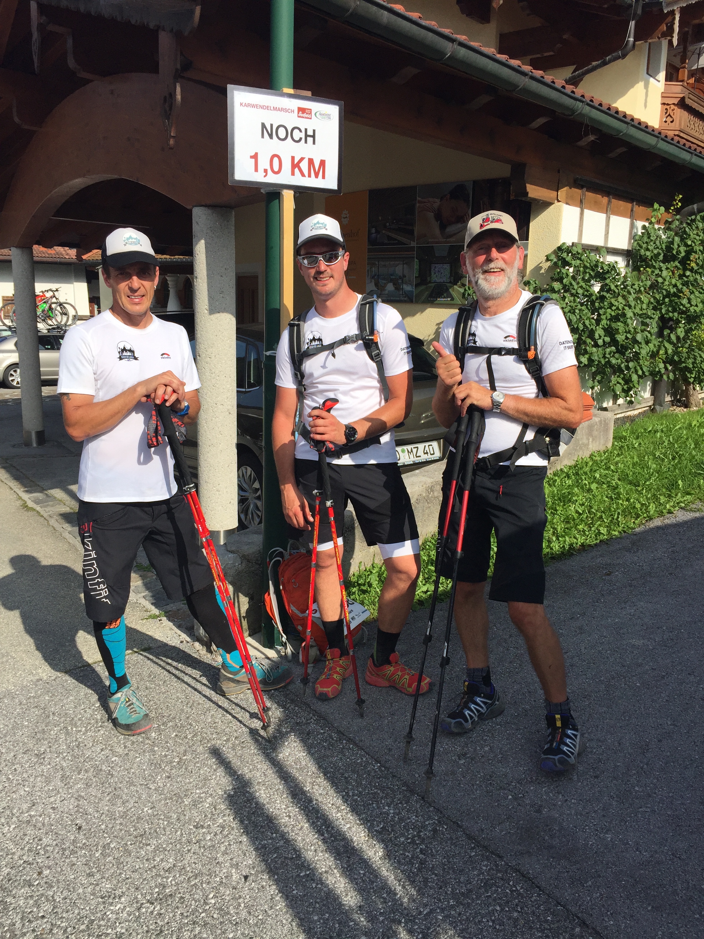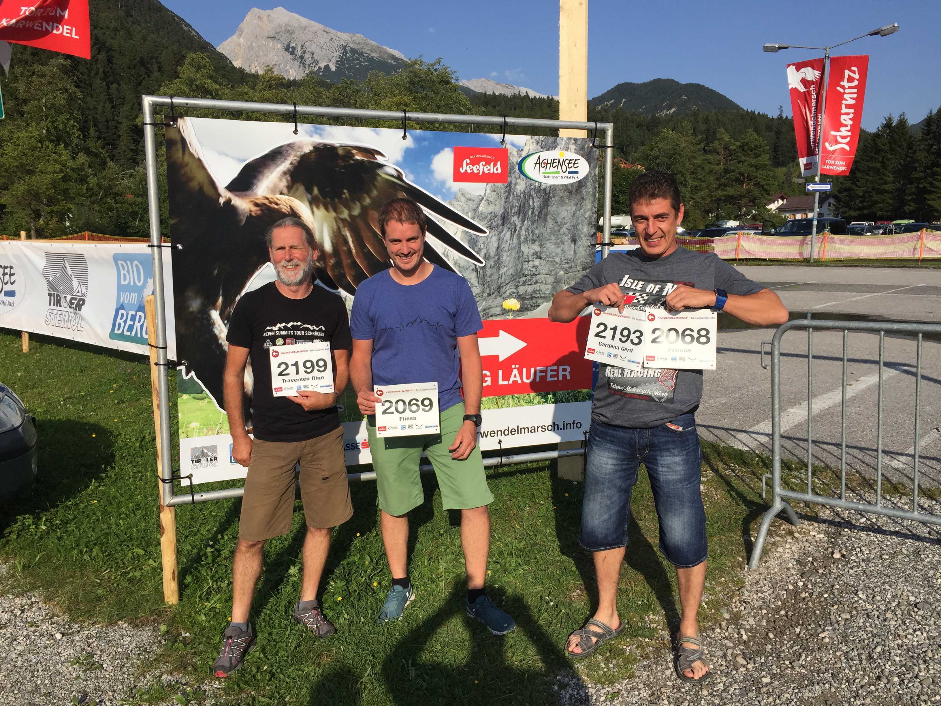 Der weit über die Grenzen bekannte Karwendlmarsch hat auch in unserer Truppe Interesse geweckt. Primus alias „Lord Schotterhalde“ hatte sich bereits im letzten Jahr versucht. Er war die treibende Kraft, dass unsere gesamte Truppe am heurigen Marsch teilnimmt. Leider liess es der Terminplan nich bei allen zu, am Karwendlmarsch teilzunehmen. Dennoch, einer 3er-Truppe, bestehend aus Primus, Rigo und Andi starteten am 26. August auf die 52 Kilometer lange und mit 2.200 Höhenmetern gespickte Strecke. Traumhaftes Wetter, eine herrliche Kulisse und eine super Stimmung bescherten unseren Jungs einen Traumtag. Es hat wirklich alles gepasst. Nichts zu meckern. Der Karwendlmarsch war top organisiert und eines steht fest: im nächsten Jahr wird die vollständige Truppe dabei sein.