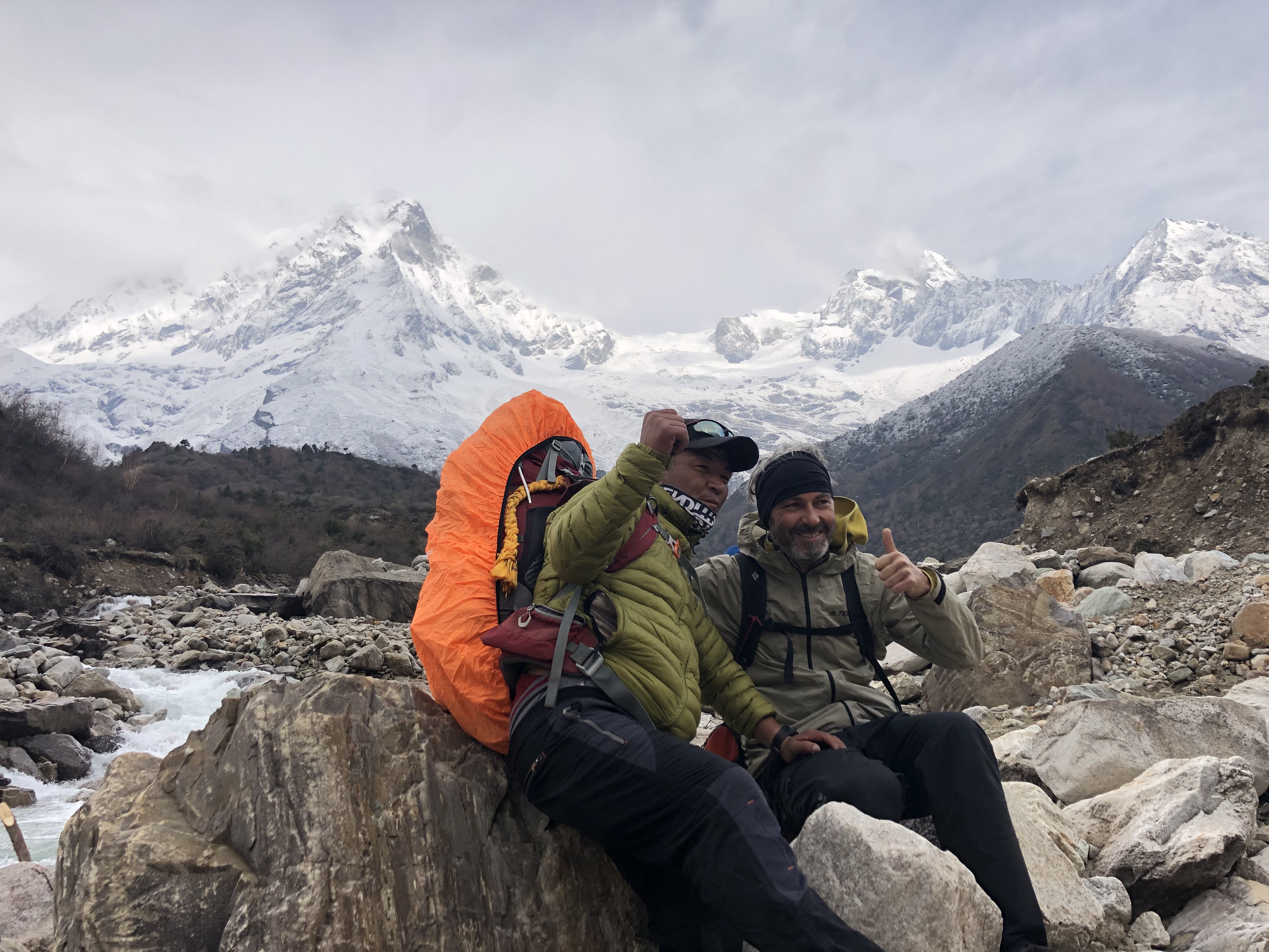 Chandra unser Guide war schon lange am Ziel und checkte unsere Lodge. Wir bestaunten derweilen die Riesen und deren mächtigen Gletscher links und rechts unseres Weges.