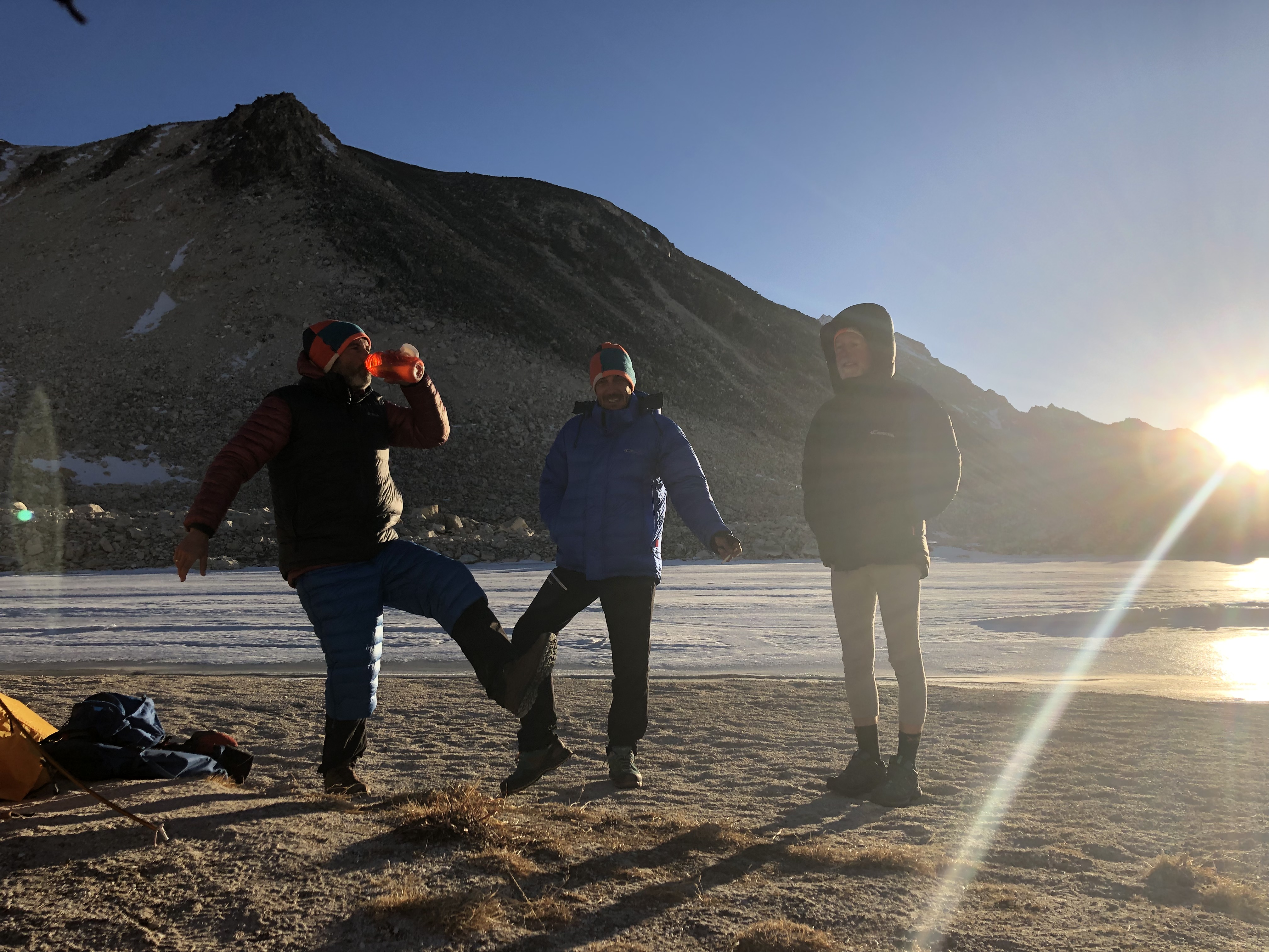 Ein bombastischer Morgen, sehr ähnlich wie gestern nur etwas wärmer. Die Nacht hatte ca -10 Grad, was in unsren Schlafsäcken unter dem Komfortbereich von -20 ist und daher angenehm warm war. Die Zeitraffer waren ein Erfolg und alle haben soweit ganz gut geschlafen.