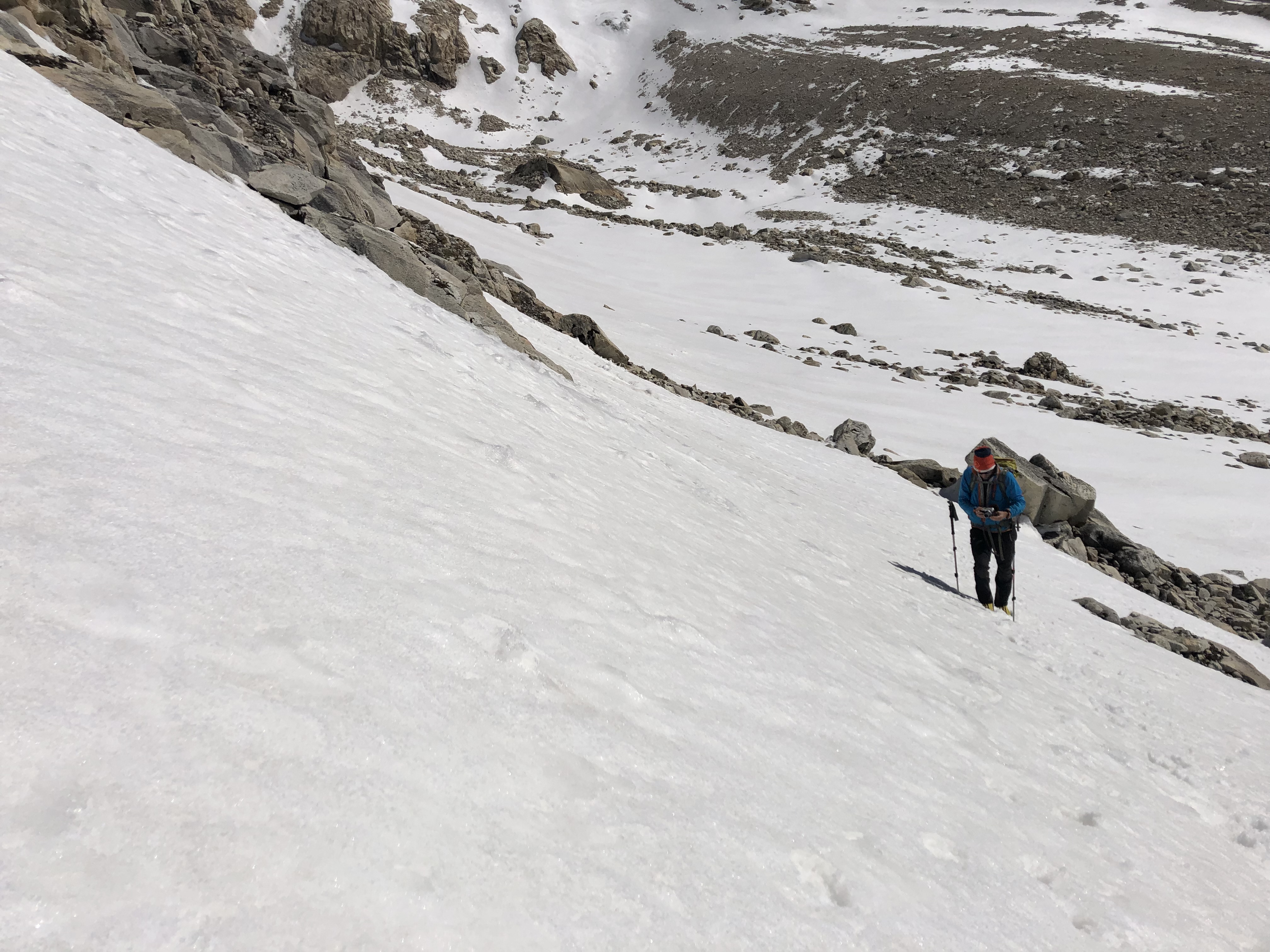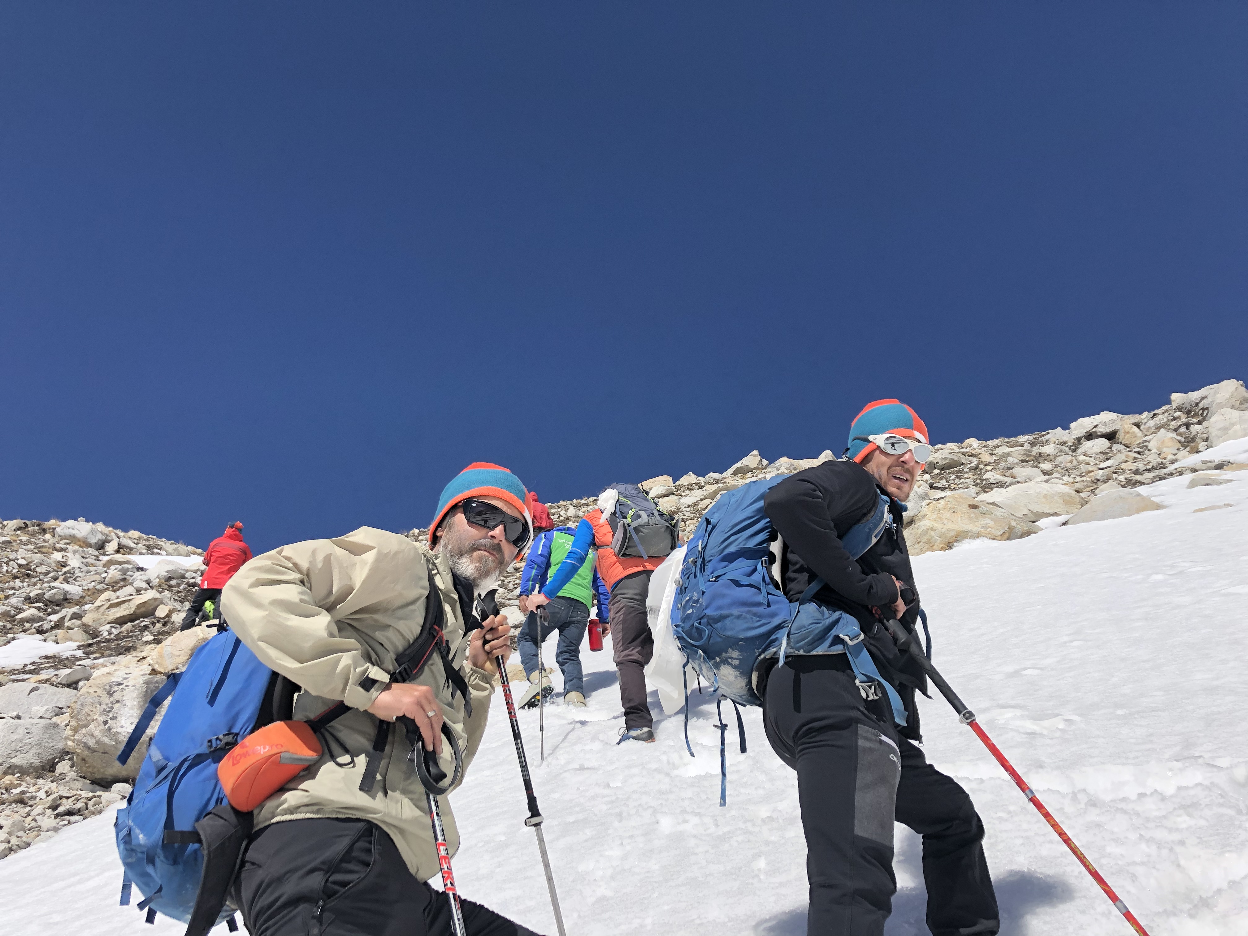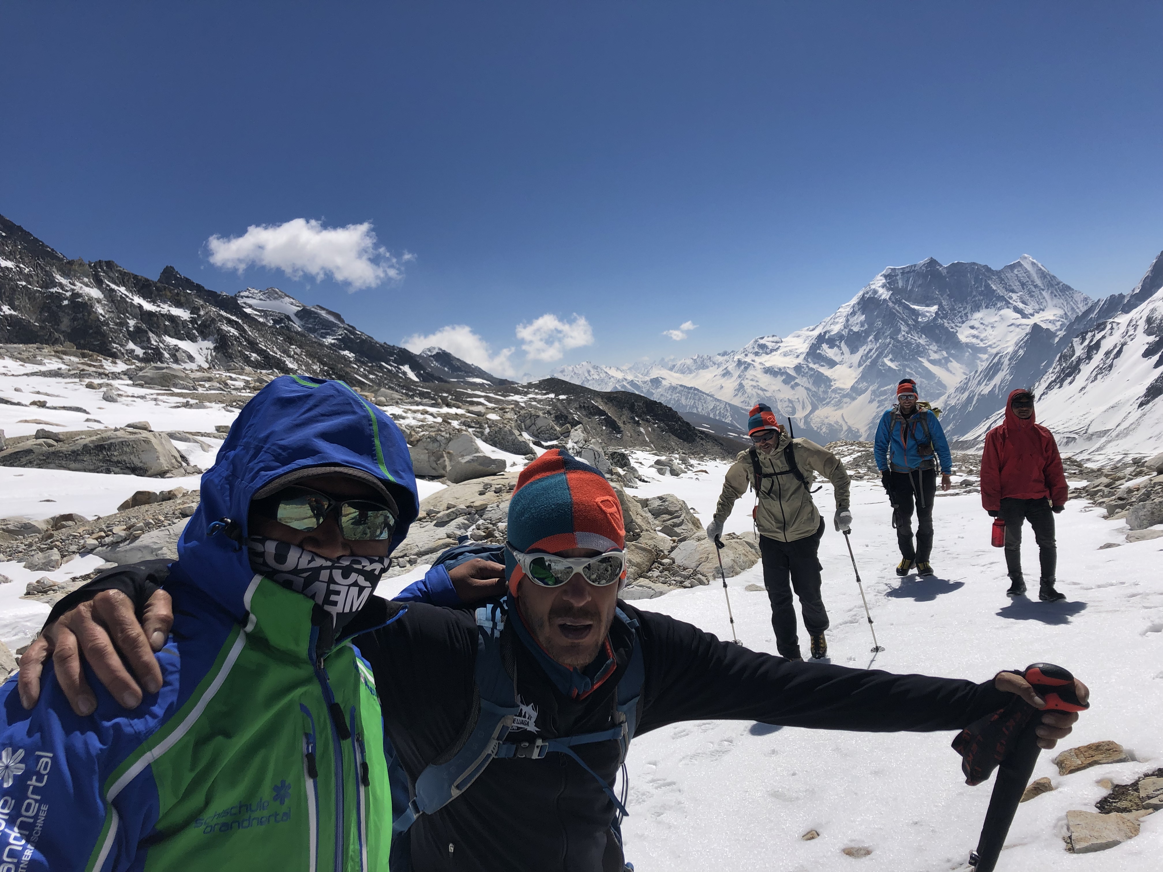 Frühstück wie gestern, danach rascher Aufbruch auf die Südseite. Dava unser Hochtouren Guide ging mit Speedy voran, wir watschelten in gemäßigten Tempo hinten nach.